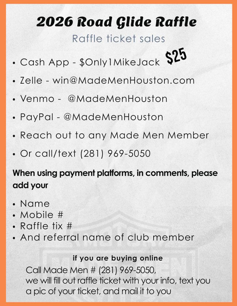 We are Honored to have our 2026 HD Road Glide Raffle and Day Party at Republic Harley Davidson in Stafford Texas